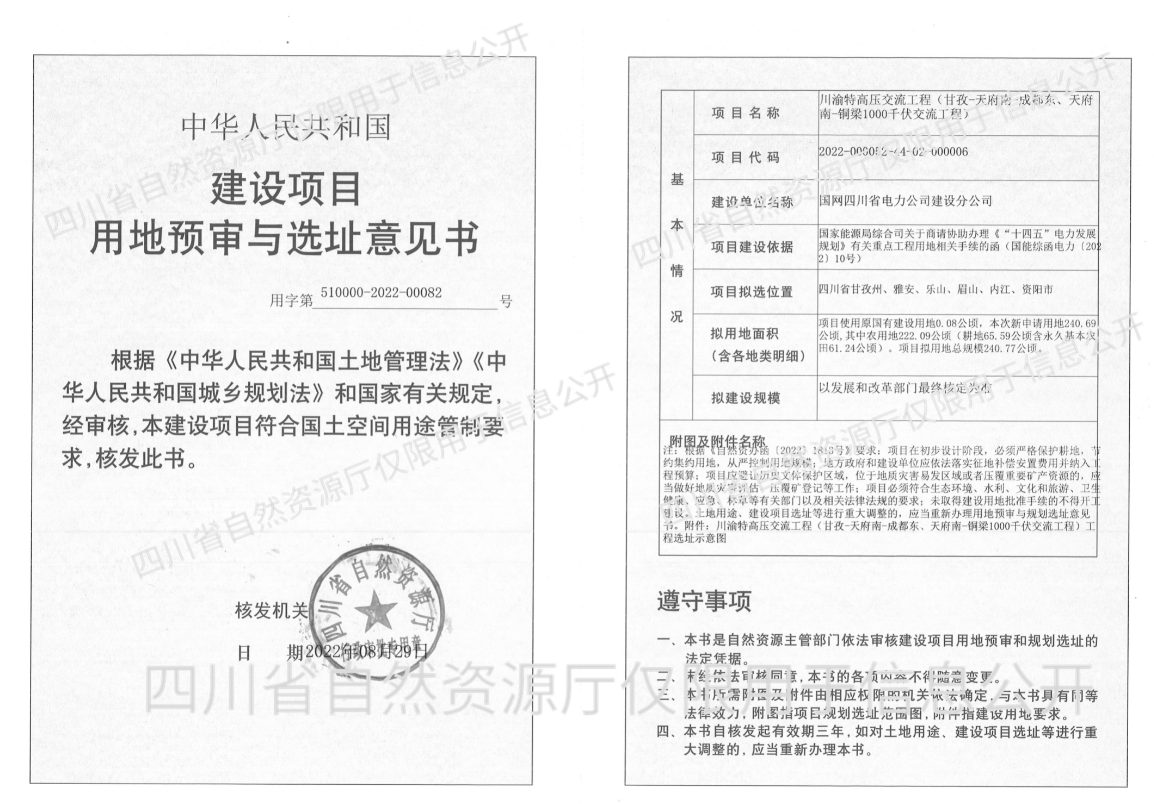 川渝特高(gāo)壓工(gōng)程規劃選址與用地(dì)預審論證報告獲省廳認可